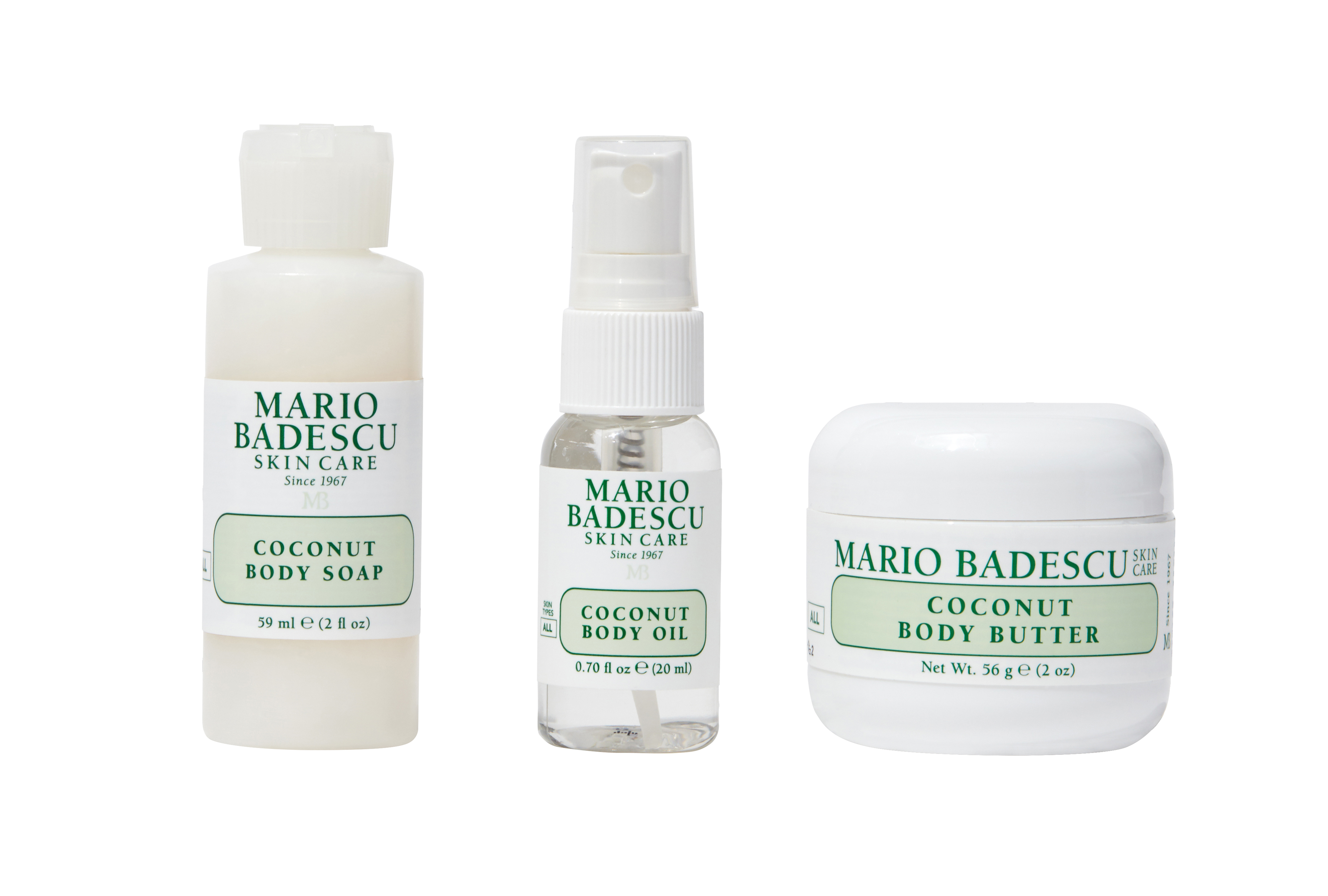 This three-piece mini collection includes a Coconut Body Soap to clean and replenish, a Coconut Body Oil for a splash of lightweight hydration with a shine, and our ultra-hydrating Coconut Body Butter to seal in moisture and leave your skin with a smoother, softer texture and radiant glow.