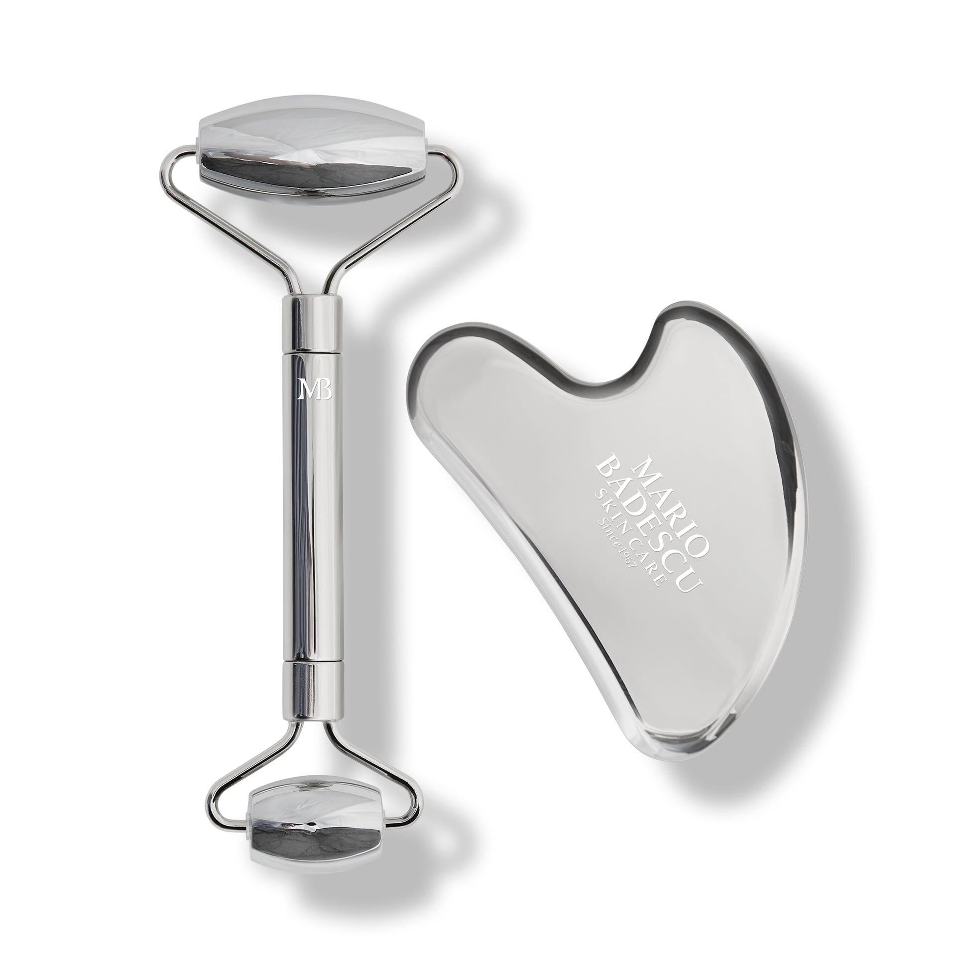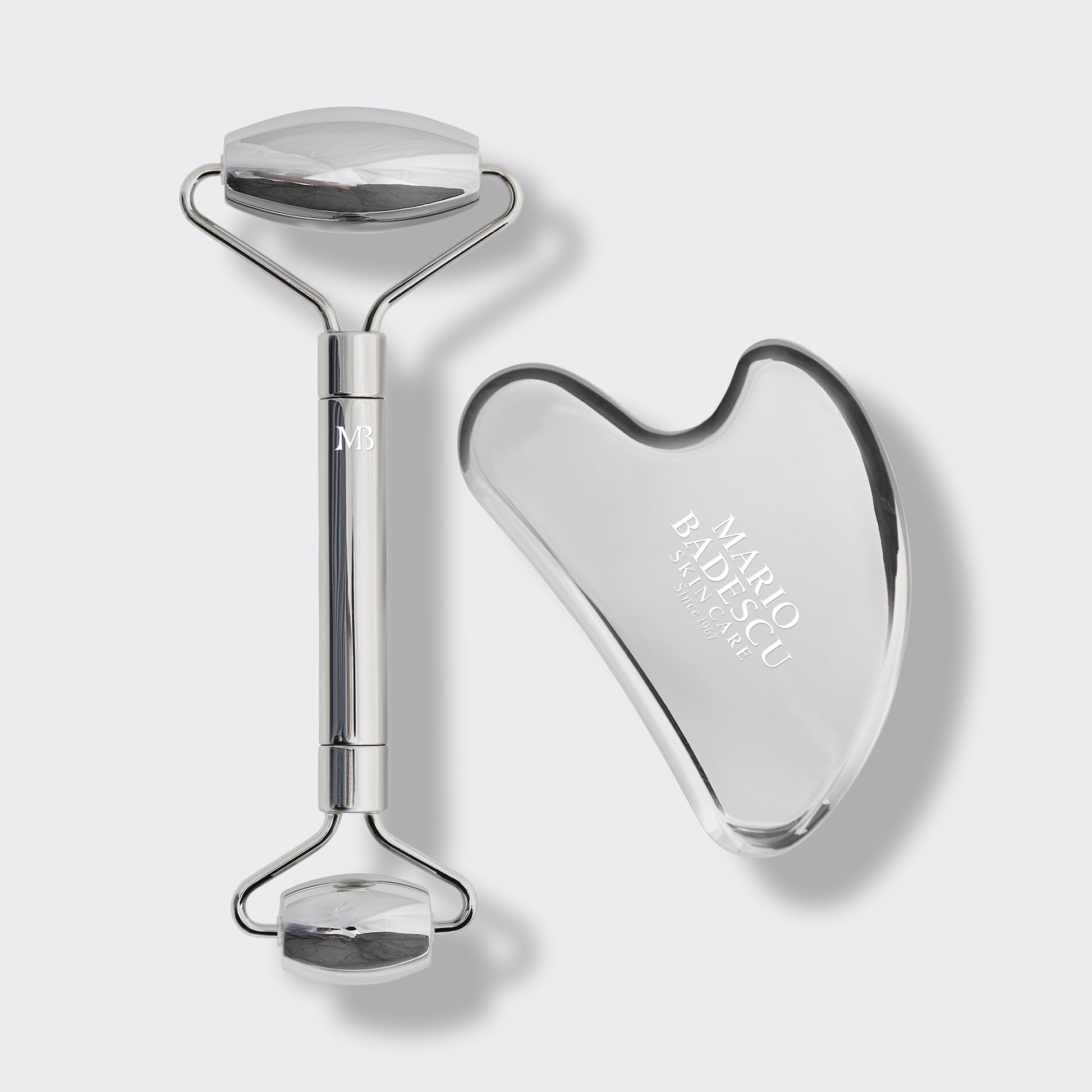 Elevate your skincare routine with the Mario Badescu Stainless Steel Facial Roller Set and Gua Sha Set, inspired by ancient Chinese beauty rituals. This stainless steel duo promotes overall skin radiance and vitality.