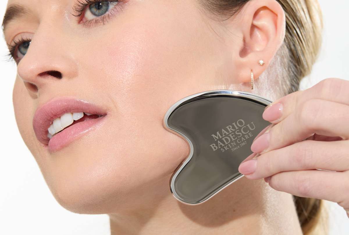 Incorporate the Mario Badescu Stainless Steel Gua Sha into your skincare routine three times a week. This practice can help maintain your natural contours, relieve facial tension, and promote a lifted, firmer appearance over time. Enjoy the benefits of a traditional beauty tool, reimagined for modern use, promoting a healthier, more radiant complexion.