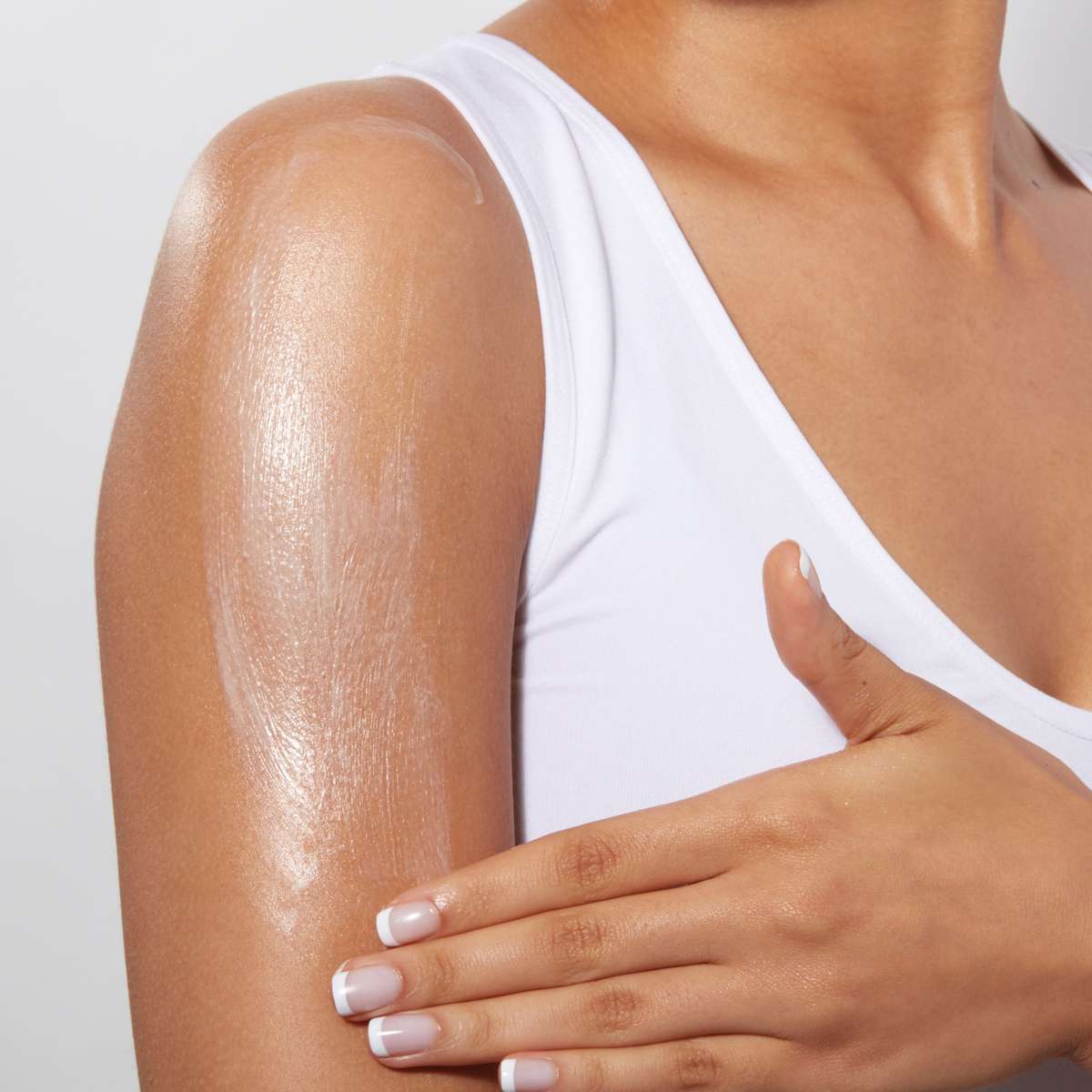 #MBSKINTIP: For a strategic, shimmering highlight, apply Summer Shine Body Lotion on your collarbones, shoulders, and down the front of your legs.